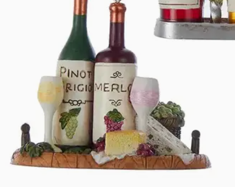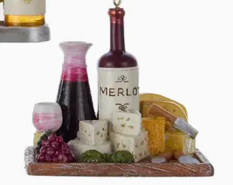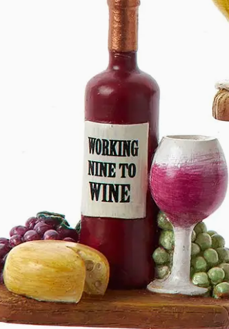 3" Resin Wine Plate W/Cheese Ornament- working nine to wine