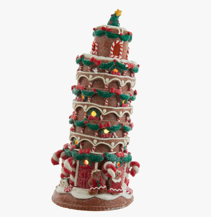 Pre-Lit Leaning Tower Of Pisa Table Piece