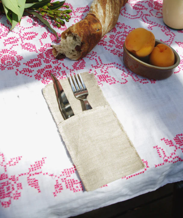 THIEFFRY MONOGRAMME LINEN BREAD BAG by Thieffry (White)