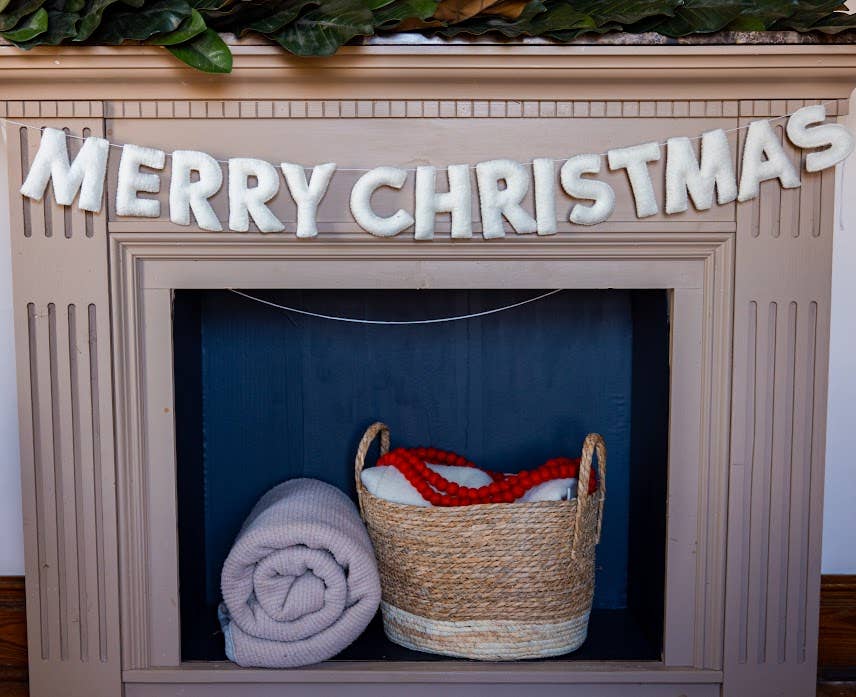 White Merry Christmas Felt Garland