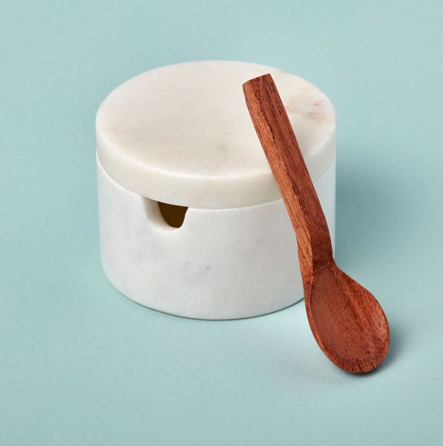 White Marble Lidded Cellar with Wood Spoon