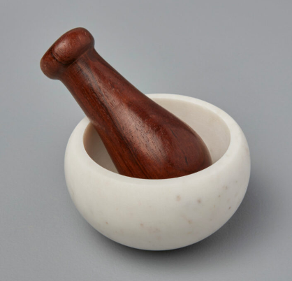 White Marble & Wood Mortar & Pestle