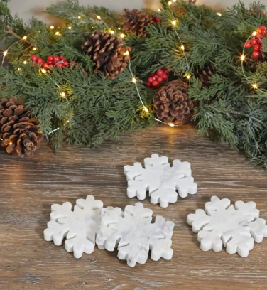 White Marble Snowflake Coasters, Set of 4