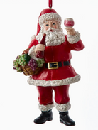 This Wine Santa Ornament from Kurt Adler is a whimsical and playful holiday decoration that combines the festive spirit of Santa Claus with the enjoyment of a good glass of wine. Crafted with attention to detail, this ornament adds a touch of humor and delight to your seasonal decor. This ornament features a miniaturized figurine of Santa Claus with a playful twist. Instead of the traditional sack of gifts, Santa is depicted holding a wine glass and a bottle of wine with a basket of grapes. This clever reinterpretation captures the idea of Santa indulging in a moment of relaxation and celebration. It features intricate details and accents, such as glitter accents that enhance its festive charm.