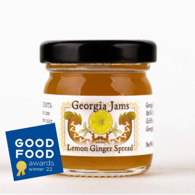 Organic lemons and ginger root two ways (fresh grated, and candied!) come together in this bright, fresh spread. We are so pleased Lemon Ginger is the 2022 Good Food Awards winner! Mix with cream cheese or goat cheese and serve with ginger snaps or spice cake. Lemon Ginger adds flavor as a glaze for chicken, pork, or salmon. Also perfect stirred into hot tea. Our farm partner is JoNina Farm / Georgia Grown Citrus (lemons and oranges) in Ochlocknee, Georgia's fertile southwestern Plantation Trace region. Low Sugar * Vegan * Vegetarian * Gluten-Free