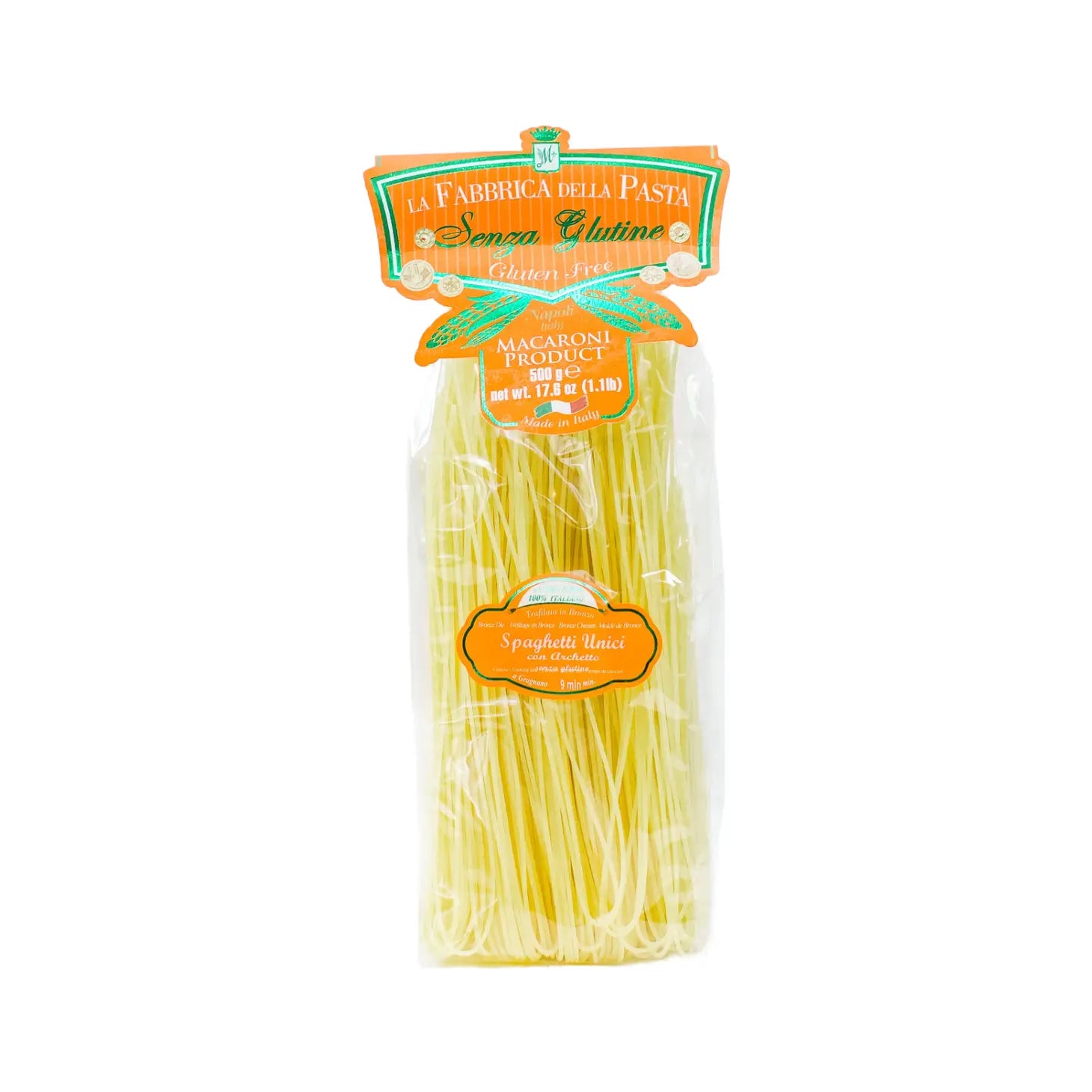This is the best, most authentic gluten-free spaghetti you will ever try! Serve with your favorite tomato sauce for a classic Italian meal like Nonna makes. La Fabbrica Della Pasta is the first pasta factory in the world to make a bronze-drawn, artisanal pasta of gragnano, that is completely gluten free. Made with the best rice and corn flour available and local spring water, bronze-drawn and slow-dried at a low temperature, this is true artisanal pasta from gragnano. It has wonderful flavor and bite, maintaining its firmness after cooking. Use as you would any quality dry pasta. All of la fabbrica della pasta's gluten free products are made with special care in a separate, completely gluten-free facility to protect from any cross contamination. Net weight: 500 g/1.1 lb Ingredients: corn flour, rice flour, water