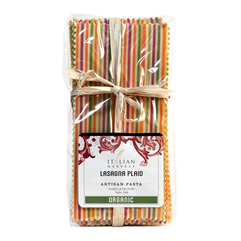 The crisp definition of colors in these beautiful sheets of lasagne is a tribute to the pasta artistry of the Marella Factory. They expand significantly and beautiful hidden colors add a surprise to your lasagna!