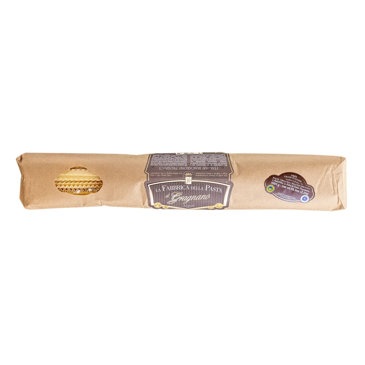 These meter-long mafaldine are wrapped in parchment, just like the old days. This pretty, ribbon-shaped pasta with wavy edges pairs well with sauces of meat, game, fish, spices based on seafood, and creamy cheese sauces. Package contains two individually wrapped 500g packs, one kilo of pasta! La Fabbrica Della Pasta has been making pasta for three generations in Gragnano, a small town nestled in the hills near Naples, famous for its pasta production for over 500 years. Pasta from Gragnano is very special: made with local spring water and high-protein durum wheat which helps keep the pasta al dente, then extruded through a bronze die, giving the pasta a porous texture that helps it bind with sauce, and dried slowly at a low temperature.