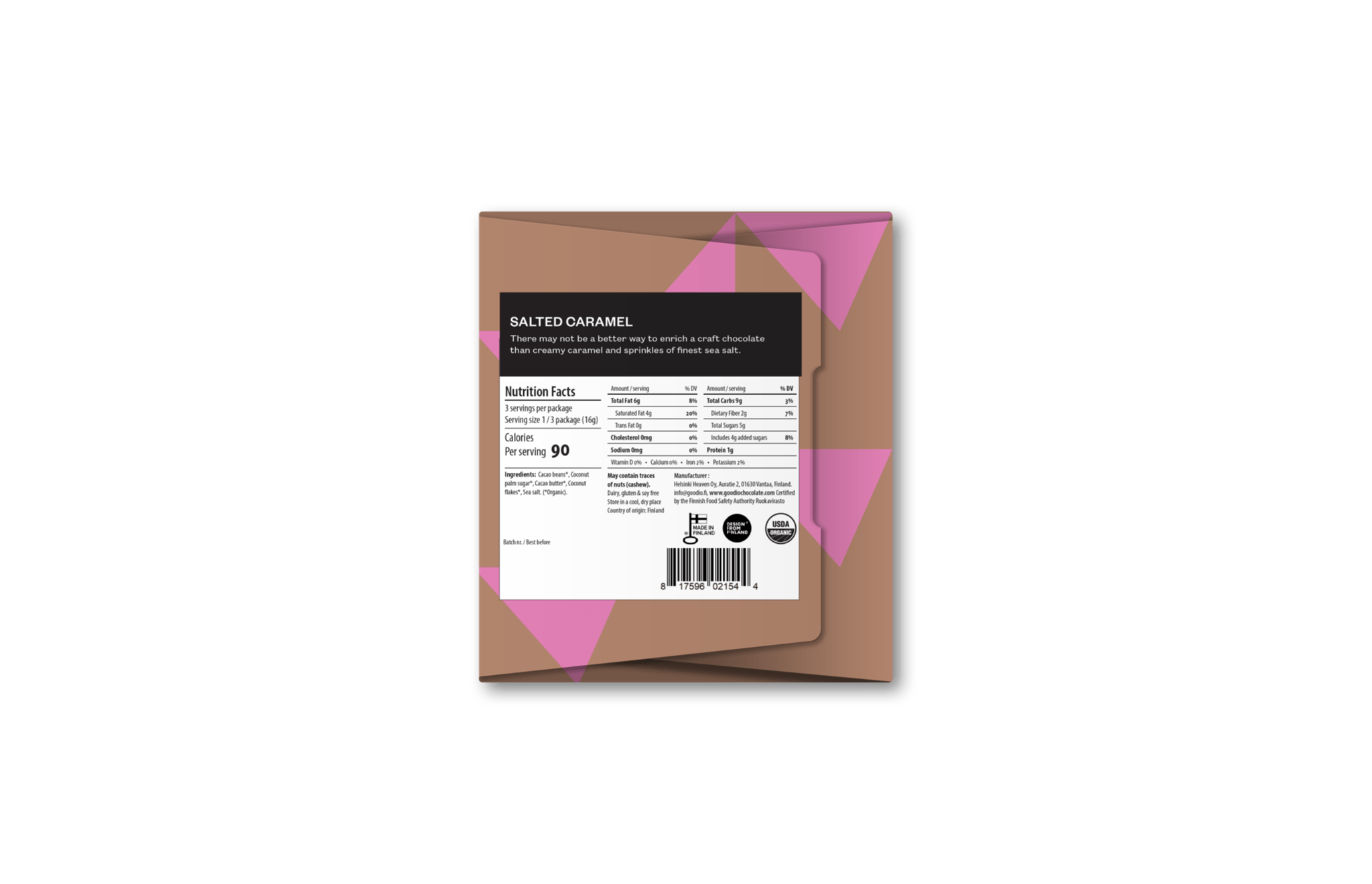 This bar is proudly handmade with love in Finland - the happiest country in the world by Goodio Chocolate Artists.