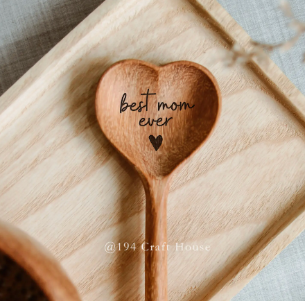 Best Mom Ever Engraved Wooden Heart Spoon - Home Decor and Gifts