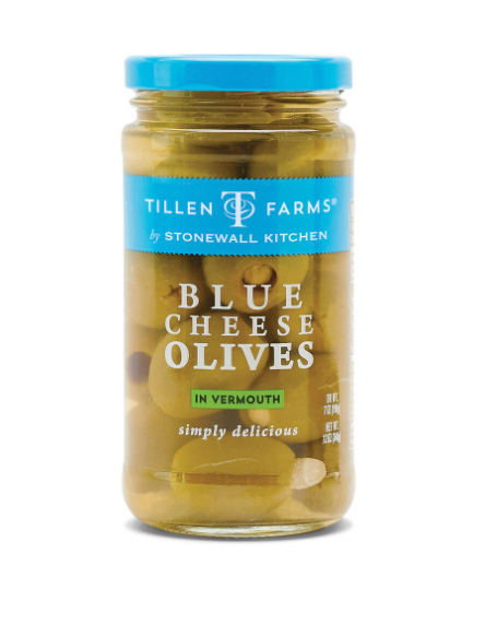 These premium green olives are the key to making martinis deliciously dirty. Grown in the Halkidiki region in Greece, hand-stuffed with creamy Wisconsin blue cheese and lightly brined in smooth vermouth, our olives serve as a tangy garnish to cocktails or make for a tasty snack straight from the jar.