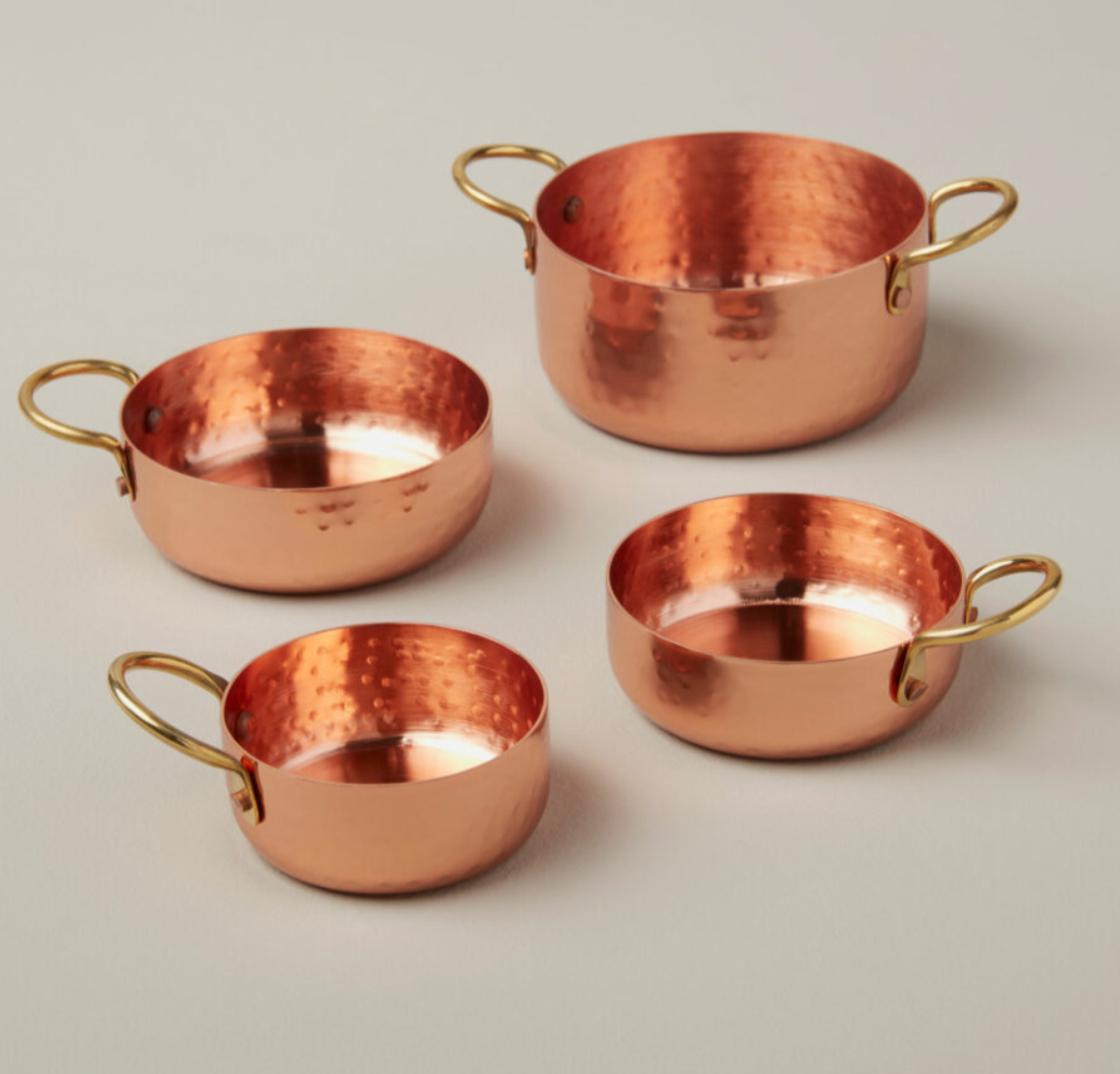 Life is batter with beautiful cake tools. Indulge in rustic copper accent pieces that warm and brighten the home with our hammered copper measuring cups. A bold addition to any kitchen, each set is handcrafted by master artisans to produce its unique rippled texture and imbued with a food-safe coating.