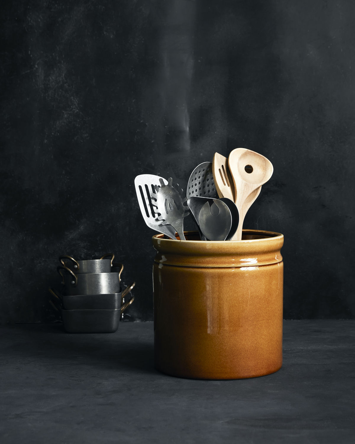 Utensil jar or a jar for food storage? You decide. Barn from Nicolas Vahé is a stoneware jar with a smooth, retro-inspired brown glaze. It is bound to inject a sense of warmth and create a relaxed atmosphere in your kitchen. The colour and smooth surface of the jar give you a timeless and casual item that you can use to display your utensils on the kitchen counter or to store food that does not require a lid. You could even make the colour an accent colour if you pair it with the salt jar in the same design.