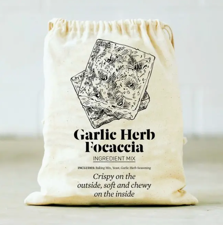 Focaccia checks all our bread boxes: crispy on the outside, soft and chewy on the inside, and it works perfectly for both sopping up sauce or sliced through horizontally for sandwiches. With this baking kit it is easy enough to whip up for dinner (with just a little time needed to let your dough rise). And dusted with garlic and herbs - this bread is one of our all-time favorites. Garlic Herb Focaccia Baking Mix Includes: - Baking Mix - Baking Yeast - Garlic & Herb Seasoning
