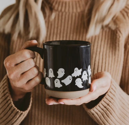Ghost Pattern Stoneware Coffee Mug - Halloween Decor