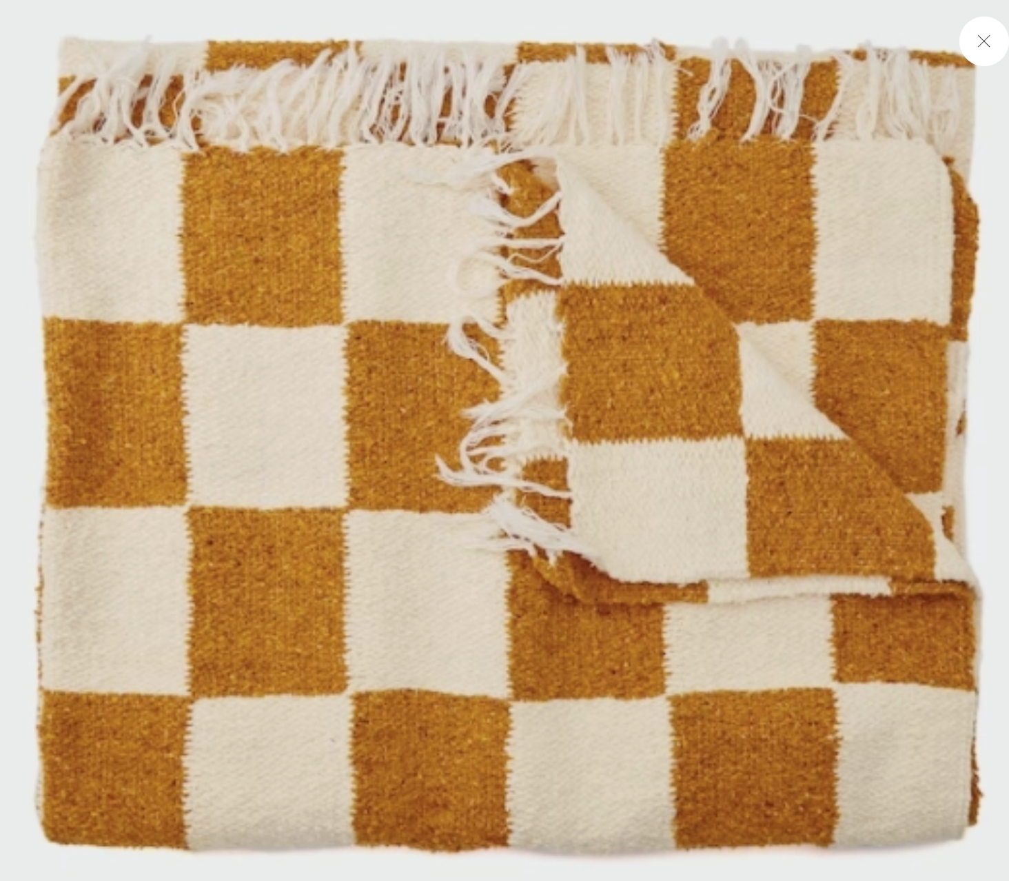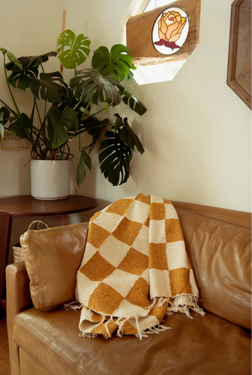 Our Best Selling Blanket. (In Stock and Shipping Fast!) Both beautiful and sustainable, these handmade heavyweight blankets are made of reclaimed fibers derived from 100% post-consumer materials containing a special blend of cotton, acrylic, and polyester. The Gold Checkerboard Throw is designed to be your go-to blanket - perfect for a home accent throw to cuddle up with & rugged enough for your weekend adventures up the coast! These are tightly woven throws can double as a rug! Designed in California, Artisan made in Mexico. Natural Base Mustard Checker Measures 83 x 52 3.5lb Mexican Blanket, Beach Blanket, Decor Blanket, Picnic Blanket, Outdoor Blanket, Yoga Blanket, Spring Style, Woven Blanket, Sustainably Made Throw Blanket, Turkish Towel, Up-cycled Material, Vintage Style, Neutral Color Blanket, Trending on Faire, Trending Spring, Trending Style, Checkerboard, Checker Trend, Neutral Color Palette, Pumpkin, Fall Style, Baja Blanket, Gold Blanket, Mustard Blanket