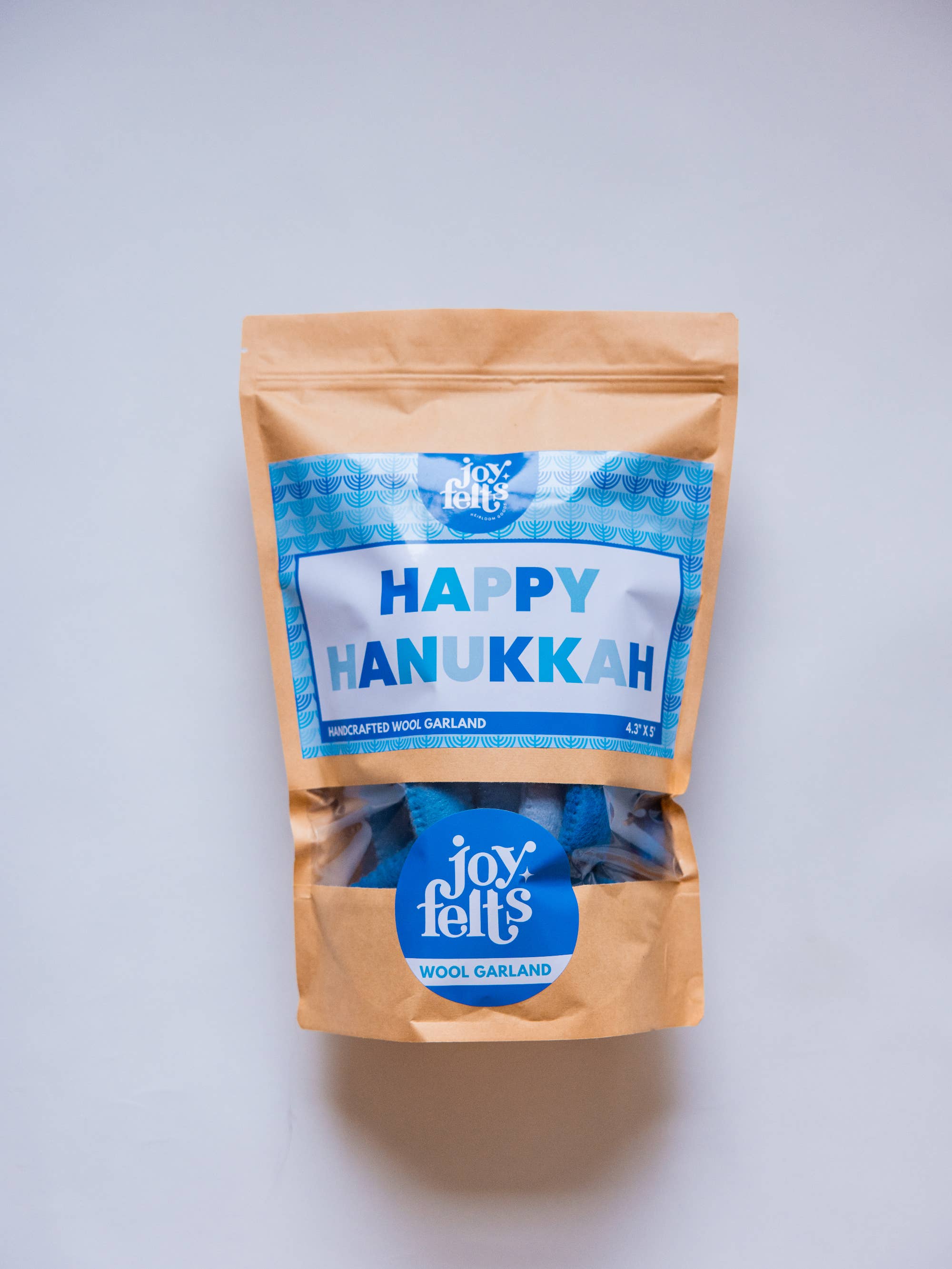This garland is made from 100% wool felt that has been stuffed and sewn for a 3D effect. Each end of the garland has a loop for easy hanging.  There are no knots in the 5.5ft cord in order to make spacing customizable with a gentle tug. Letters are 3.5in high.