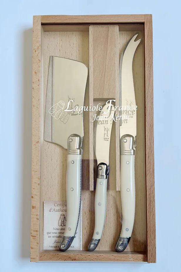 Laguiole Ivory Cheese Utensils (Large) w/ Acrylic Lid in Wood Box