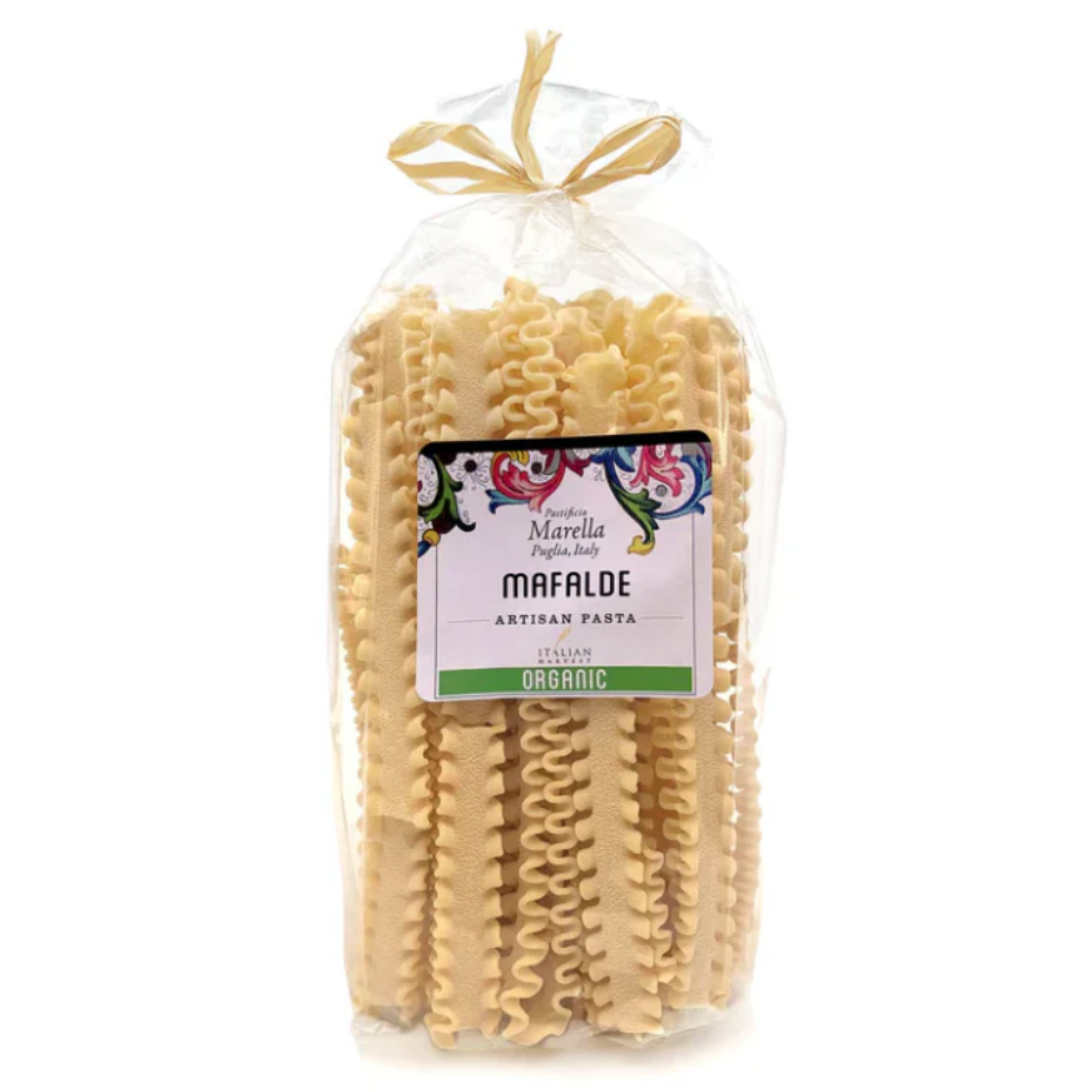 Mafalde are named after Princess Mafalda, daughter of King Vittorio Emanuele III. Also known as “reginelle” (or little queens), this curly-edge pasta is an ode to the ruffles in the Princess’ petticoat. Pair with your favorite sauce, especially meat sauces. Made with 100% Italian wheat.