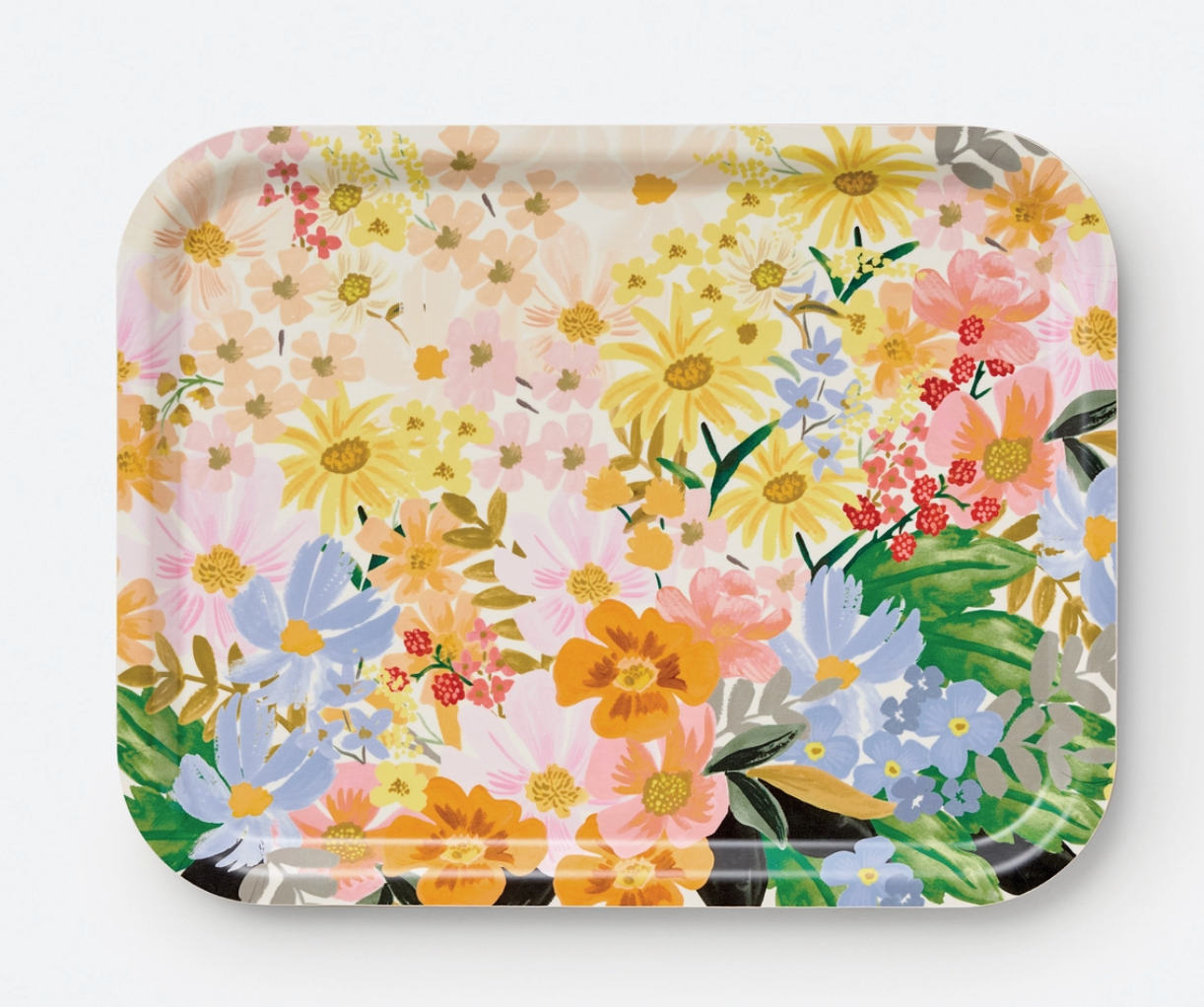 Our bent ply trays are as versatile as they are beautiful, handmade in Sweden from lightweight birch. The laminated finish makes them perfect for entertaining inside and out, or adding a pop of color to your decor. This rectangle tray features our bright and cheerful Marguerite design, and its medium size makes it a great addition to a vanity or bar cart.