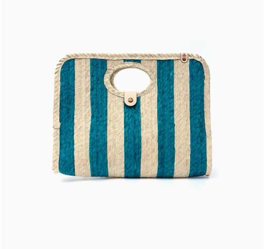 Introducing our new woven Portafolio Clutch—a must-have for every occasion! The portfolio shape offers ample space to accommodate your daily essentials. Heading out for a night on the town? Your makeup, phone, and keys fit perfectly inside. Need to carry important documents? Slip them in. Even a small laptop or tablet finds a cozy home within. The magnetic closure keeps your important goodies safe and the circular opening makes it easy to keep hold of. This clutch will be your new sidekick for your next beach vacay or as a coffeeshop companion. Dimensions- Exterior: 11.5" x 14.25" x 2.75" Interior: 8.25” x 13” x 2” Please note: Basket and leather straps are hand made and colors will vary. Our baskets are made from natural palm fiber, please be gentle with your new bag. Be sure not fold the bag in a way that might damage the fibers.