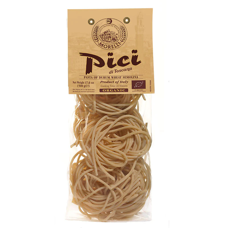 Pici pasta enjoys a long, ancient history, dating back to the Etruscans. This regional specialty originates from the town of Siena in Tuscany. If you've been to Siena, chances are you've enjoyed Pici pasta! When cooked, pici has a radius about the size of a standard pencil, giving it a cook time of around 20 minutes, but it is well worth the wait. Serve it with any sauce or try something more traditional like pici alle briciole (pici with breadcrumbs) or pici all'aglione (pici with tomatoes and garlic).