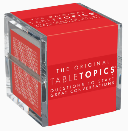 The edition that started it all! THE Original Conversation Starters - Updated with new questions, these engaging questions inspire the best kinds of conversation—whether over a glass of wine or at a get-together with family or friends. Each card poses a different question that helps you create the perfect mix of conversation. They’re fun, thought-provoking, and everything in between. 135 question cards in a 4" x 4" x 4" clear, acrylic cube. Ages 12 and up