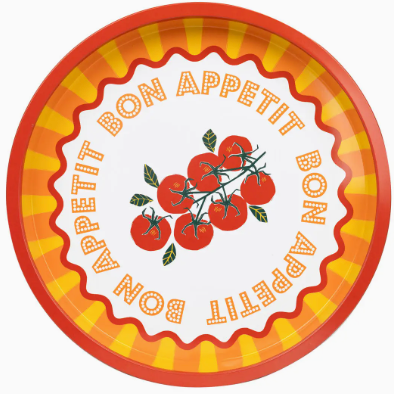 From handing out refreshments to organising condiments and collecting guests’ empty glasses, our tomato tin tray can be used in a myriad of ways. Part of our brand new Bon Appetit collection that channels the trend for bringing bistro style living into the home, the lively design of the tray sits wonderfully alongside our vibrant enamel serveware to court customers’ attention. Size: 31cm Food Safe Hand Wash Only Product: Designed To Last Packaging: Home Recyclable Recommended Occasions: Summer Party Picnic BBQ Recommended Retailers: Home Decor Stores Kitchenware & Cookware Shops Gift Shops Lifestyle Stores Kitchenware Stores People also consider: summer tableware, summer decor, tomato trays, summer decor, mothers day gifts, mothers day decor, summer party tableware, tomato tray, summer tray, tomato serving tray, decorative tray, summer serving platter, Bon Appetit tray, outdoor dining tray, summer picnic essentials, picnic tray, mom gifts